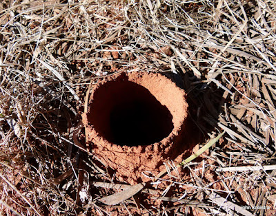 On our walk we noticed a few of these small earthen craters with tunnels branching off underground. A cooling tower for an ants nest was the most obvious possibility, but the ants were nowhere to be seen.